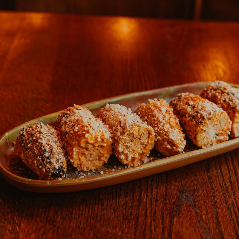 Fire roasted corn, seasoned crema, fresca, cotija cheese, cilantro.